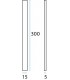 Forme rectangulaire hauteur 300 mm, largeur 15 mm, épaisseur 5 mm.
