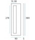 Forme rectangulaire hauteur 300 mm, largeur 90 mm, épaisseur 5 mm, avec une découpe de largeur 30 mm, hauteur 270 mm.