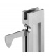 Poignée tirette avec crochet rabattable, réalisation en inox pour porte coulissante en verre d'épaisseur 10 mm.