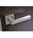 Paire de poignée béquille série Quadro 16. Inox aisi 304 finition brossé. Sur rosaces de 50 x 50 mm épaisseur 8 mm. Ressort de rappel intégré a une sous rosace en métal. Ensemble pour carré de 7 et 8 mm (7 mm Norme Française).