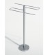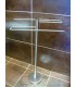 Porte serviette double à poser série Fine en inox aisi 304 avec une finition brossée. Porte serviette à poser au sol sur une platine de diamètre 180 mm, la dimension du tube central est de 25 mm, pour une hauteur total de 750 mm, une largeur de 450 mm et une épaisseur de 170 mm.