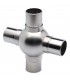 Raccord boule quatre départs en croix pour tube diamètre 38 mm. Fixation par collage. Matière Zamak revêtement Protectan. Disponible en finitions Effet inox brossé - Chromé brillant - Effet Laiton poli.