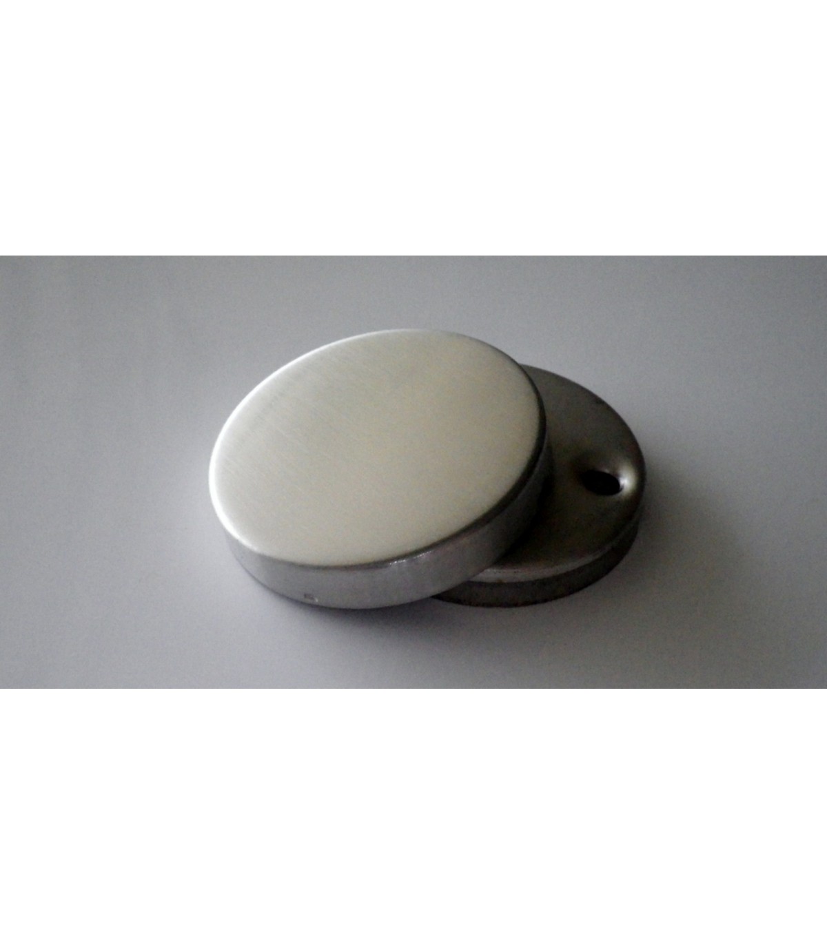 Rosace borgne. Matière inox aisi 304 finition brossé, sous rosace en inox. Dimensions : Diamètre 53 mm.