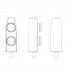 Pivot hauteur 245 mm, encoche sur le verre : 2 trous Ø 26 mm fraisés à 90° sur Ø 32 mm, entraxe des trous 50 mm à 40 mm du bord inférieur de l'imposte.