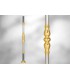 D’une esthétique plus moderne, la série "HARMONIE" se distingue particulièrement par sa finition bicolore : "Laiton-Inox". Après vernissage, la partie centrale est emballée sous un film plastique qui doit rester en place jusqu’à la fin des travaux. Les extrémités sont en fer rond brut, permettant ainsi l’assemblage de la rampe par soudure à l’arc ou vissage. Ces extrémités ainsi que les lisses sont à peindre avec une peinture mate ou satinée, assortie à la décoration environnante. Produit conçus exclusivement pour l'intérieur.