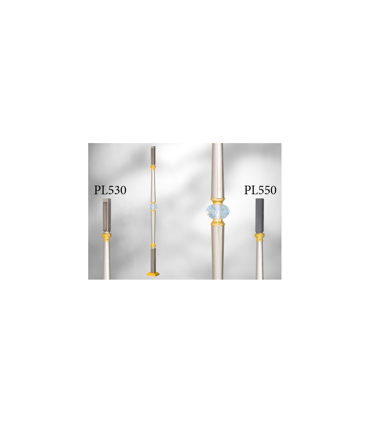 PARIS, villes des lumières, symbole de culture et d'élégance est le nom donné à ces magnifiques poteaux et balustres. En laiton nickelé et doré à l'or fin 24 carats, ils sont montés au choix avec des embouts "guillochés" en laiton nickelé ou bien avec des embouts lisses en acier, soudables. Suprême raffinement : au centre, un cristal taillé par STRASS SWAROVSKI CRYSTAL. Balustres et poteaux conçus exclusivement pour l'intérieur.