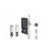 Serrure à crochet pour porte coulissante en bois d'épaisseur 36 à 60 mm. Têtière inox aisi 304 finition brossée dimensions 160 X 16 mm. Bouts arrondis. Coffre de la serrure dimension 100 X 65 mm. Épaisseur 13 mm. Axe à 50 mm. Serrure équipée de rosace à condamnation intérieur / extérieur pour carré de 8/8 mm et poignée cuvette hauteur 120 mm, largeur 34 mm, entraxe de fixation 105 mm.