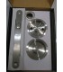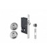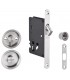 Serrure à crochet pour porte coulissante en bois. Pour porte épaisseur 36 A 60 mm. Têtière inox aisi 304 finition brossé dimensions 160 X 16 mm. Bouts arrondis. Coffre dimension 100 X 65 mm. Épaisseur 13 mm. Axe à 50 mm. Serrure équipée de rosace a condamnation intérieur / extérieur pour carré de 8 x 8 mm et poignée cuvette en inox finition brossée. Gâche hauteur 90 mm, épaisseur 2 mm comprise.