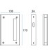 Gâche pour serrure à crochet pour double porte coulissante en verre d'épaisseur 10 mm. Gâche en inox AISI 304 finition brossé. Dimensions : hauteur 170 mm, largeur 100 mm, épaisseur 24 mm. Avec encoche GC36 à prévoir sur le verre.