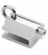 Loqueteau cavalier en inox, finition brossée ou poli brillant. Montage sur porte en verre d'épaisseur 8 à 10 mm, sans trous ni encoche sur le verre.