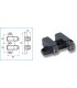 Loquet ou loqueteau magnétique double, corp carré sur platine en PVC noir. Entraxe de fixation 32 mm.