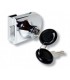Serrure forme demi ronde pour porte simple de vitrine en verre d'épaisseur maximum 6 mm. Serrure disponible en finition chromé brillant ou doré brillant. Montage sur le verre sans trous ni encoches. Livré avec deux clés et une gâche. Serrure disponible avec clés identiques ou clés variées.