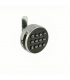 Serrure à came à clavier électrique « Phil », ø 19 x 30 mm, bouton ø 60 mm en zamak, argent/noir, came droite 40 mm, rotation à 90 degrés, public/privé, alimentée par pile CR 2450 (fournie).