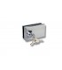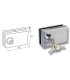 Serrure SIMA pour double porte en verre sans encoche. Finition inox brossé. Pour verre d'épaisseur 10 mm. Espace minimal entre les deux portes : 2 mm. Montage possible sur imposte haut ou latéral.