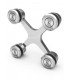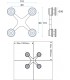 Spider quatre branches. Matière inox aisi 304 finition brossé. Pour la liaison de quatre panneaux en verre d'épaisseur 8 à 12 mm. Diamètre de perçage du verre 12+0.20 mm. Dimensions maximum du vitrage : 1000 x 1000 mm. Pièces spécifiques permettant d’assurer le maintien des volumes en verre d’épaisseur 8 à 12 mm.
