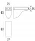 Console d'étagère design LIS01550 par Confalonieri pour tablette en verre ou bois. Métal moulé sous pression. Dimensions : Hauteur 63 à 90 mm en fonction de l'épaisseur de la tablette - Largueur 37 mm - Saillie 80 mm. Distance de la tablette au mur : 9 mm. Fixation par 2 vis entraxe 25 mm. Pour étagère d'épaisseur de 6 à 36 mm. Pour la fixation de ce support la visserie est fournie.