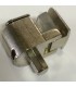 Taquet anti-décrochage en métal pour étagère en verre. Article disponible en finition nickel brillant. Ce taquet permet de fixer des étagères de 4 à 8 mm d'épaisseur de façon sûre grâce à un pion de Ø 5 x 7 mm qui s'emboite sur le montant en bois du placard. Taquet caractérisé par le fait qu'une simple pression sur celui ci permet le blocage et le déblocage de la tablette.