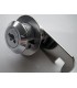 Barillet amovible avec came droite à crochet. Corps en zamack chromé brillant, dimensions : diamètre 19 mm, tête conique diamètre 23 mm, fixation du corps par écrou avec contreplaque a pointes, fixation de la came par une vis. Rotation 3/4 de tour de la clé et de la came.