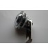 Barillet amovible avec came droite à crochet. Corps en zamak chromé brillant, dimensions : diamètre 19 mm, tête conique diamètre 23 mm, fixation du corps par écrou avec contreplaque a pointes, fixation de la came par une vis. Rotation 3/4 de tour de la clé et de la came. Enjoliveur diamètre 32 mm en inox brossé.