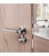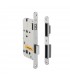 Serrure magnétique série IN20856, têtière inox satiné avec axe à 60 mm, verrouillage avec rosace à condamnation.