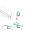 Joint d'étanchéité bas de porte lèvre déportée série S.5702 pour cabine de douche en verre. Profil en PVC translucide avec joint en silicone souple. Longueur 2500 mm. Ce joint d'étanchéité est prévu pour recevoir un verre d'épaisseur 6, 8, 10 ou 12 mm.