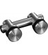Connecteur réglable pour verre épaisseur 8 à 16 mm. Permet la fixation sur un même plan à 180° de deux volumes en verre.