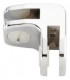 Connecteur deux départs montage verre sur verre à 90° en métal finition chromé brillant, mat ou doré brillant. Permet la liaison de deux volumes de verre d'épaisseur 4 à 6 mm. Sans aucunes encoches sur le verre. Blocage du verre par une vis en nylon.