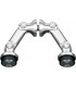 Raccord double entre deux volumes de verre à 90°, montage verre sur verre. Pour verre d'épaisseur 10 à 12 mm. Ce connecteur permet la fixation d'un volume en verre perpendiculaire au second. Raccord disponible en longueur 60 mm et 103 mm.