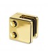 Pince à verre à talon plat en Zamack doré brillant. Livrée avec joints pour verre. Sans encoche sur le verre. Visserie inox et cache tête de vis dans la finition de la pince.