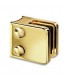 Pince à verre pour tube en Zamack doré brillant. Livrée avec joints pour verre. Sans encoche sur le verre. Visserie inox et cache tête de vis dans la finition de la pince.