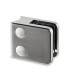Pince à verre pour tube en Zamack effet inox brossé. Livrée avec joints pour verre. Sans encoche sur le verre. Visserie inox et cache tête de vis dans la finition de la pince.