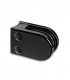 Pince à verre pour tube en Zamack noir RAL 9005 mat. Livrée avec joints pour verre. Sans encoche sur le verre. Visserie inox et cache tête de vis dans la finition de la pince.